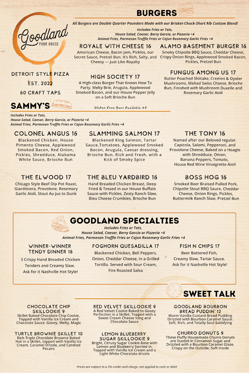 Goodland Pour House combines an inviting space, complete with indoor and patio seating, with a menu that delights every palate. It's a must-visit for food lovers looking for a casual yet flavorful culinary adventure.